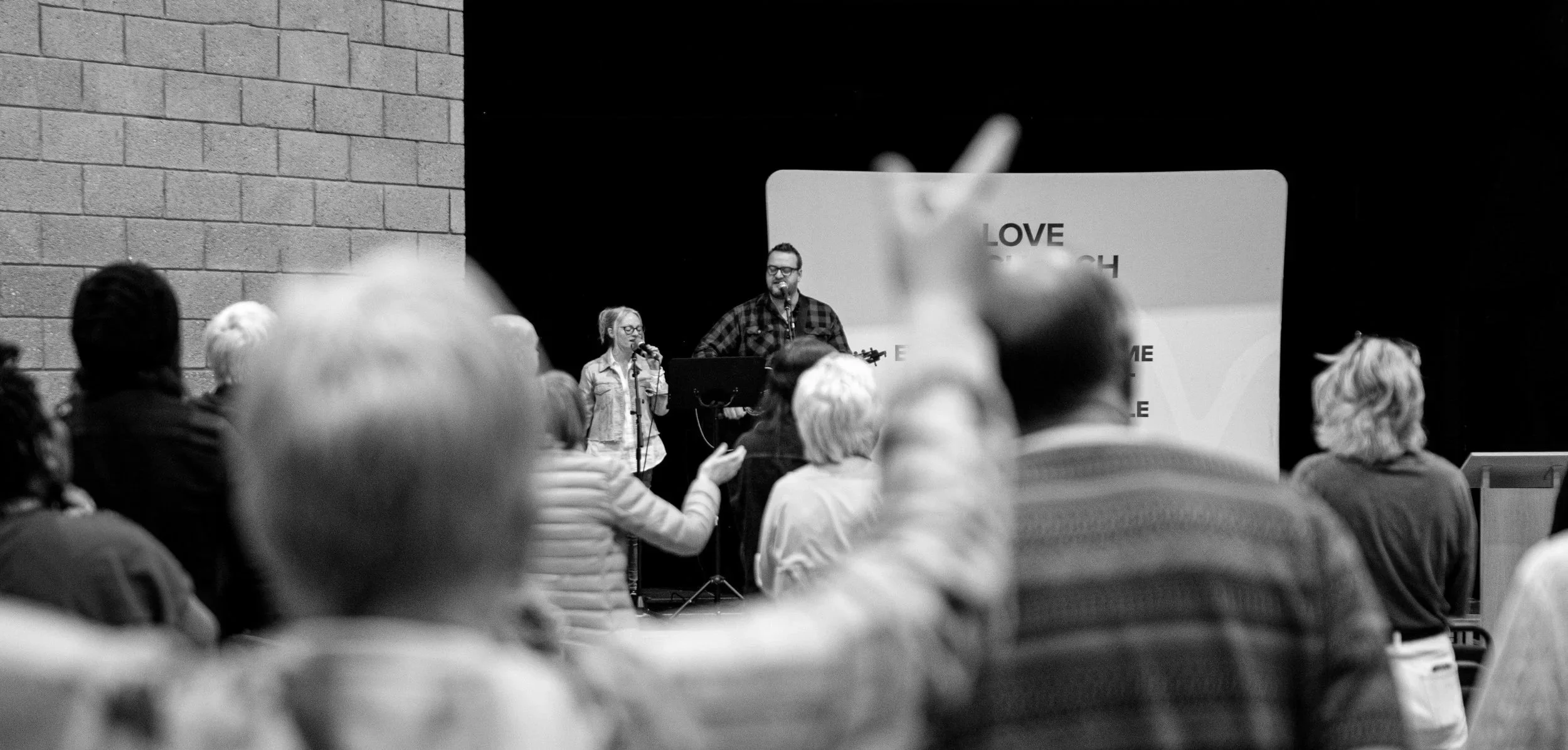 The kids usually head off to Kids’ Church part way through the last song, when a BIG “Kids’ Church” slide appears on the screens.